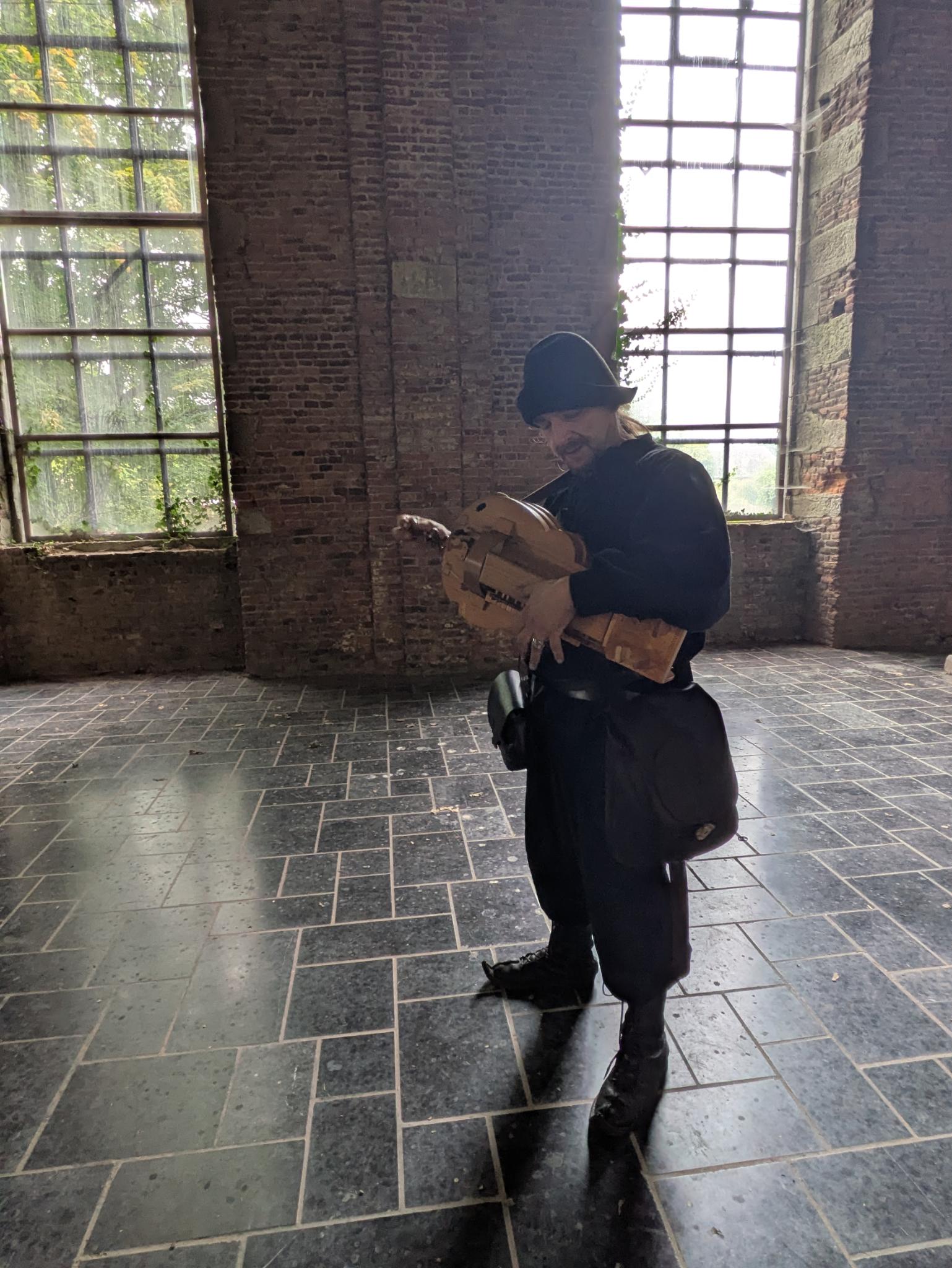 Occasionally, I enjoy playing bass drum or a mechanized violin at medieval events. Or I provide information about this special instrument at medieval events.