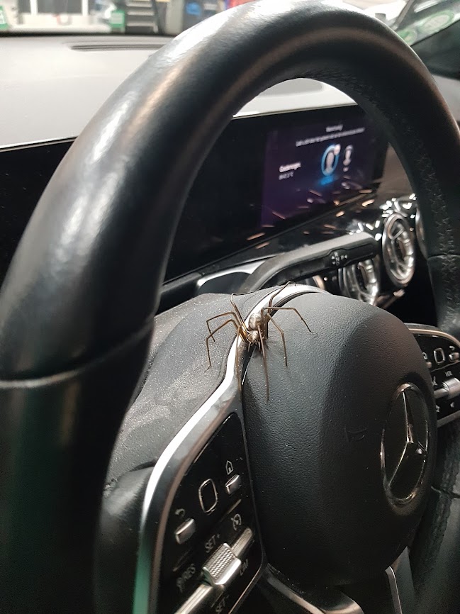 Blijkbaar zocht deze 'bewoner' wanhopig naar de mute-knop op het stuur...